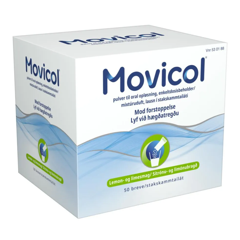 - Movicol indeholder natrium. Tal med din læge eller apotek, hvis du skal tage 3 eller flere breve dagligt i længere tid, især hvis du er blevet rådet til at følge en diæt med lavt salt (natrium) indhold.