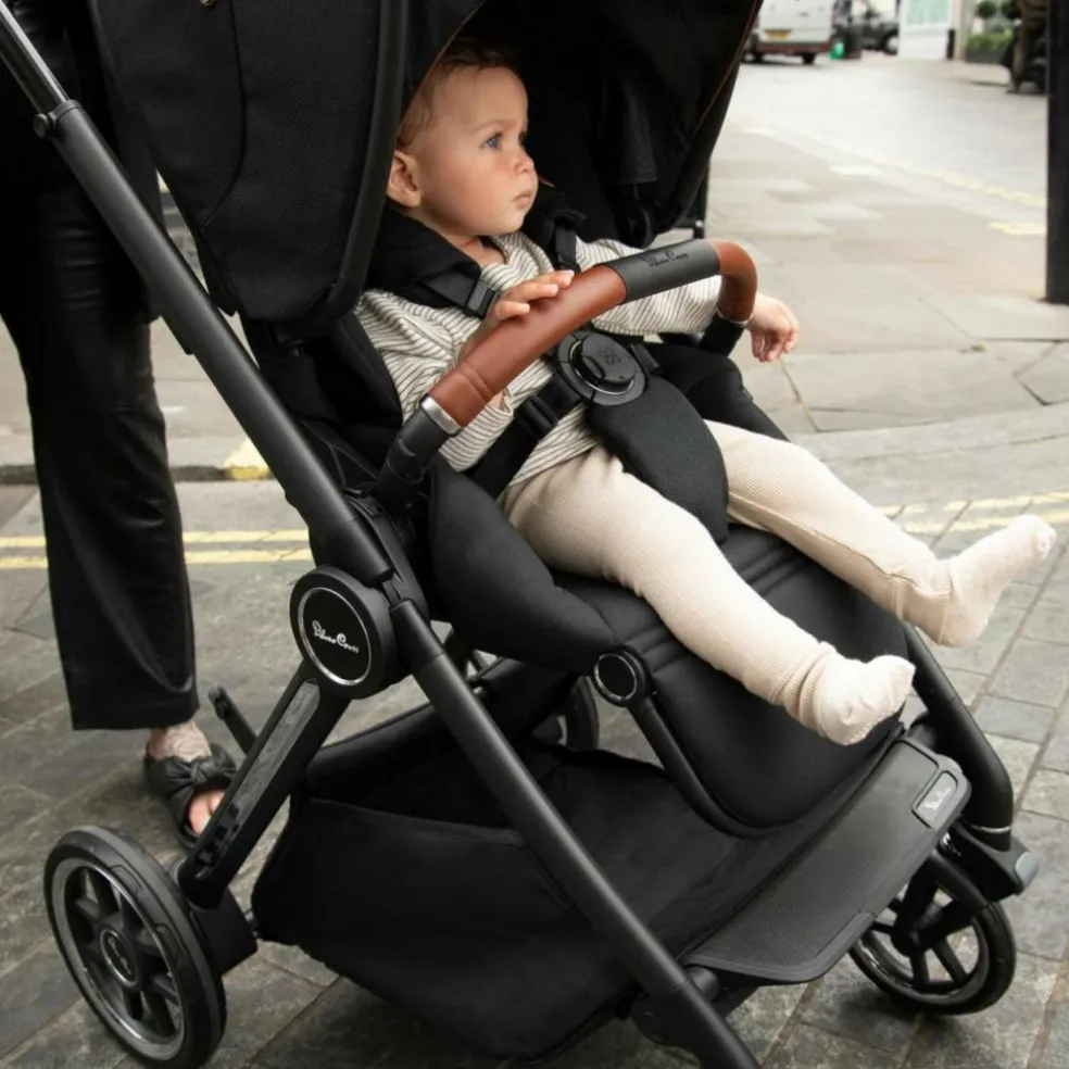Betrækket er nemt at vaske og lavet af genanvendte plastikflasker. Kombineret med de fine veganske læderdetaljer og de klassiske Silver Cross logo-beslag, fremhæver det smukke betræk barnevognens stilrene æstetik. For at gøre gåturen ekstra behageligt for din baby, kan Reef udvides med en foldbar liggedel.