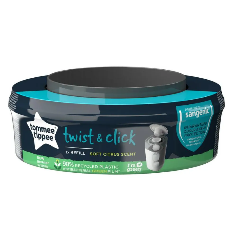Tommee Tippee Twist & Click er den eneste blespand, der individuelt forsegler hver ble i multi-lag anti-bakteriel film for at blokerer bakterier og lugtgener.