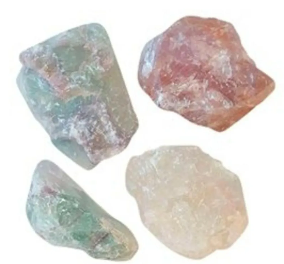Smukke, rå regnbuefluorit til eksempelvis at have liggende i hjemmet, tasken m.m. Posen består af sten i varieret størrelse. Standard: 5-10 sten per pose.