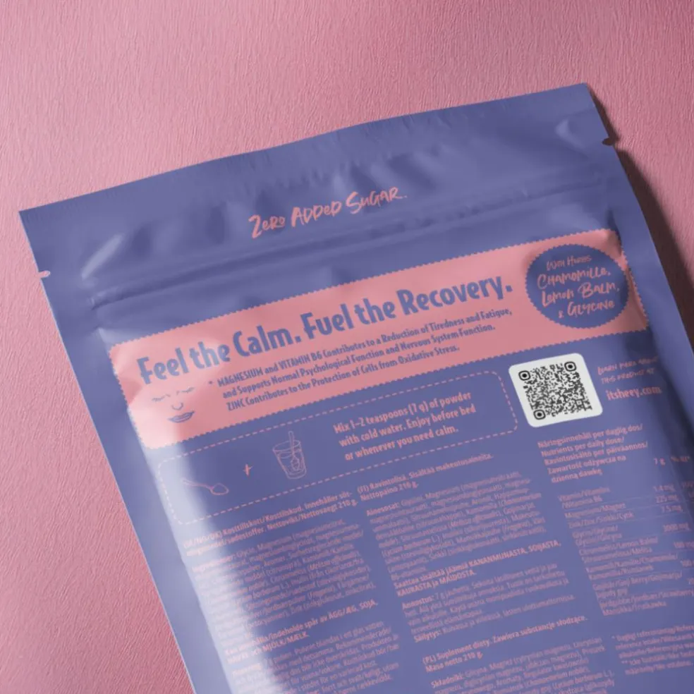 Heey! Rest & Recover kombinerer fire letoptagelige former for magnesium – citrat, taurat, bisglycinat og malat – med vitamin B6, zink, glycin og ekstrakter fra kamille, citronmelisse og gojibær.