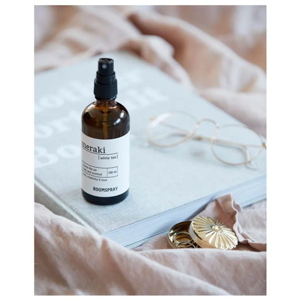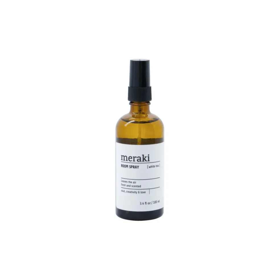 Skab en dejlig stemning i hjemmet med denne spray fra Meraki. White Tea duften fylder rummet med duftnoter fra te, bergamotte, sandeltræ og tonkabønner med blot et par pump af flasken. Brug den i ethvert rum, hvor duften skal bidrage til en afslappet og let stemning. Sprayen kommer i en glasflaske, som med fordel kan placeres på en bakke med nips eller sammen sæberne i badeværelset.