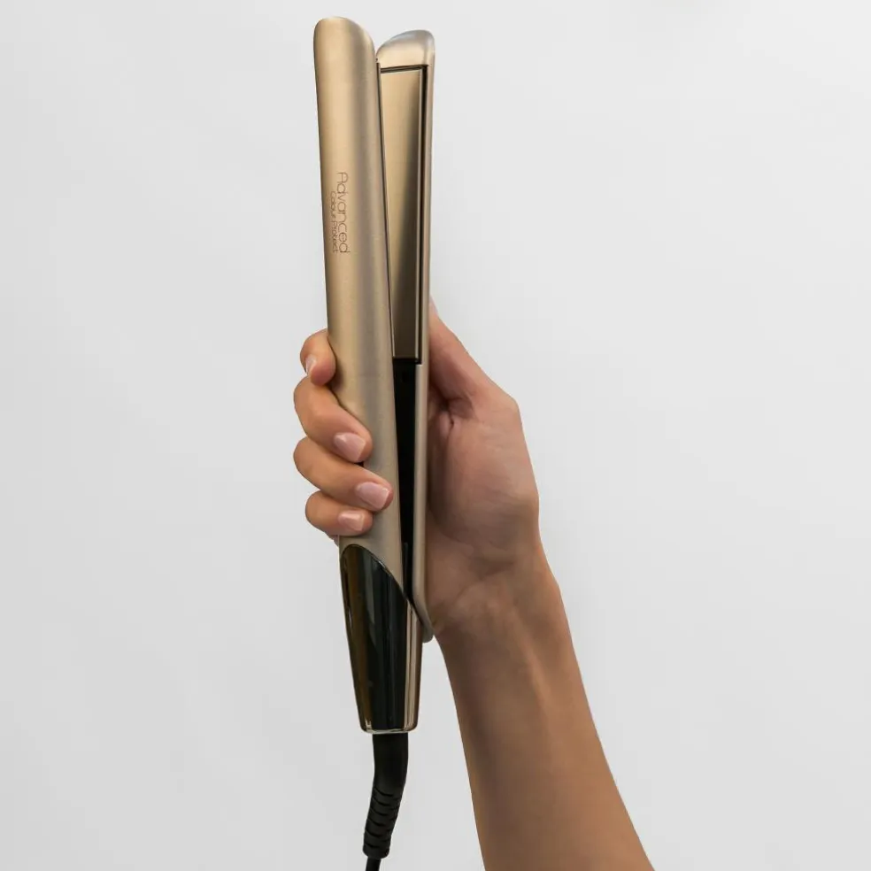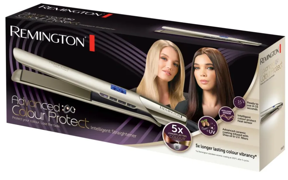 Advanced Colour Protect glattejernet får dit hår til at se sundt ud og forsegler farven og glansen, mens du glatter det. Den avancerede keramiske belægning, der er tilsat sheaolie og UV-filtre, gør det muligt at overføre mikrokonditioneringsmidler til håret, så lokkerne bliver levende og sunde.