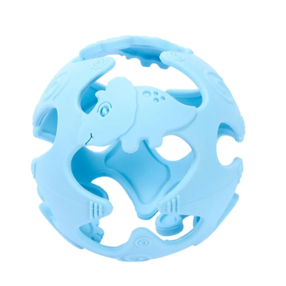 Blød og flexibel silikone gør bolden ekstra behagelig at lege med, og de forskellige teksturer masserer nænsomt babys ømme gummer under tandfrembrud.