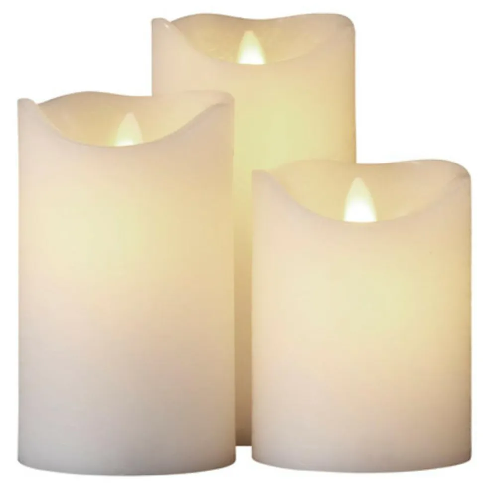 De 3 Sara Exclusive lys er lavet af ægte stearin med en flot rustik overflade og en bevægelig LED lysflamme.