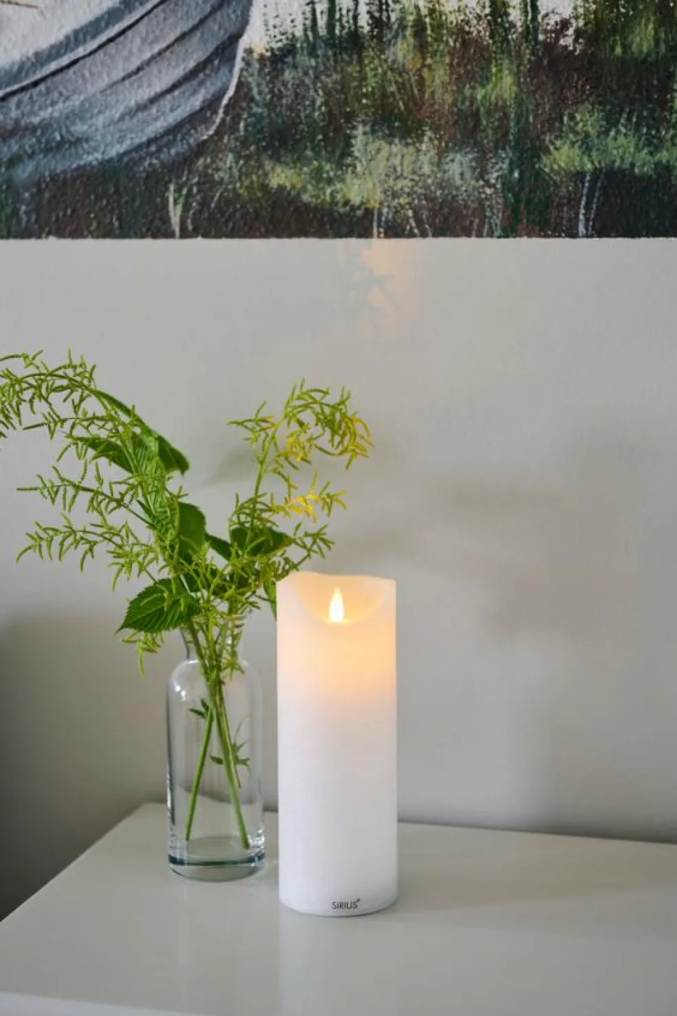Stearinlyset er lavet af rigtig stearin og tåler maks. 30 grader, pas på med direkte sollys. Kun til indendørs brug.