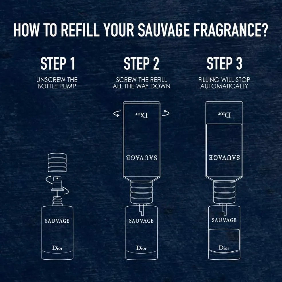 Refillen er ikke til brug alene. Kan kun bruges sammen med 100 ml Sauvage Eau de Parfum.