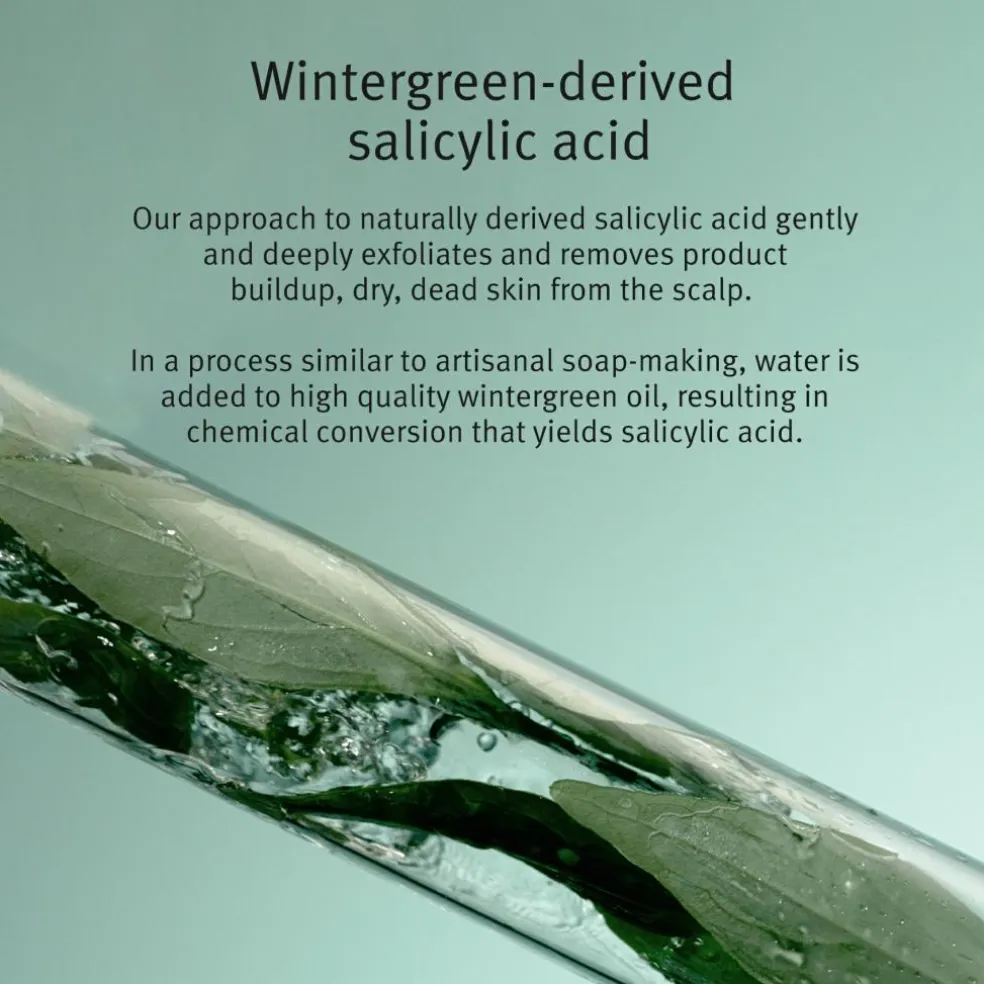 Vintergrønt produceret salicylsyre giver sammen med glucosamin fremstillet ved gæring en dyb og samtidig skånsom eksfoliering af hovedbunden.