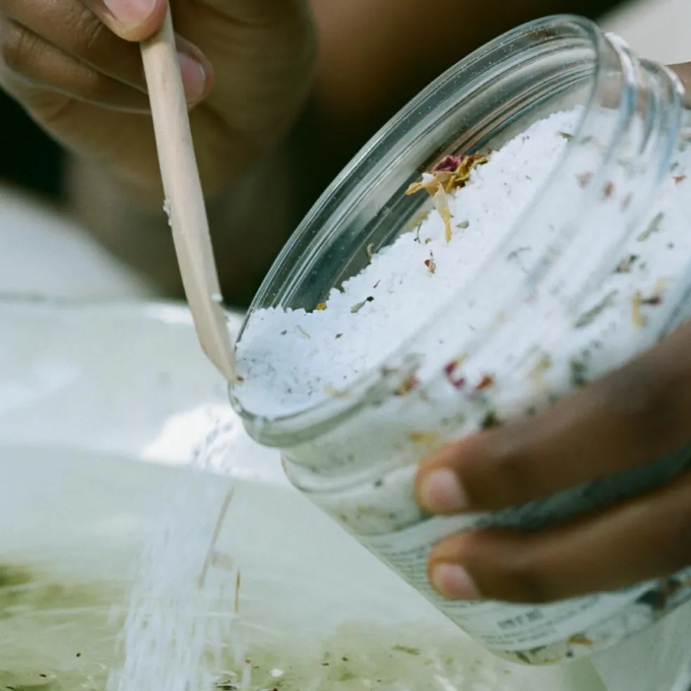 Et pebermyntebadesalt, der afgifter, renser og nærer krop, sind og hud. Fuld af nærende mineraler, som har en lindrende effekt på ømme muskler og smerter. Et øjebliks hvile, der senere vil forbedre det generelle helbred og ydeevne. Mynteblade og æterisk pebermynteolie siges at fremme koncentrationen. Modvirker effektivt træthed og stress.