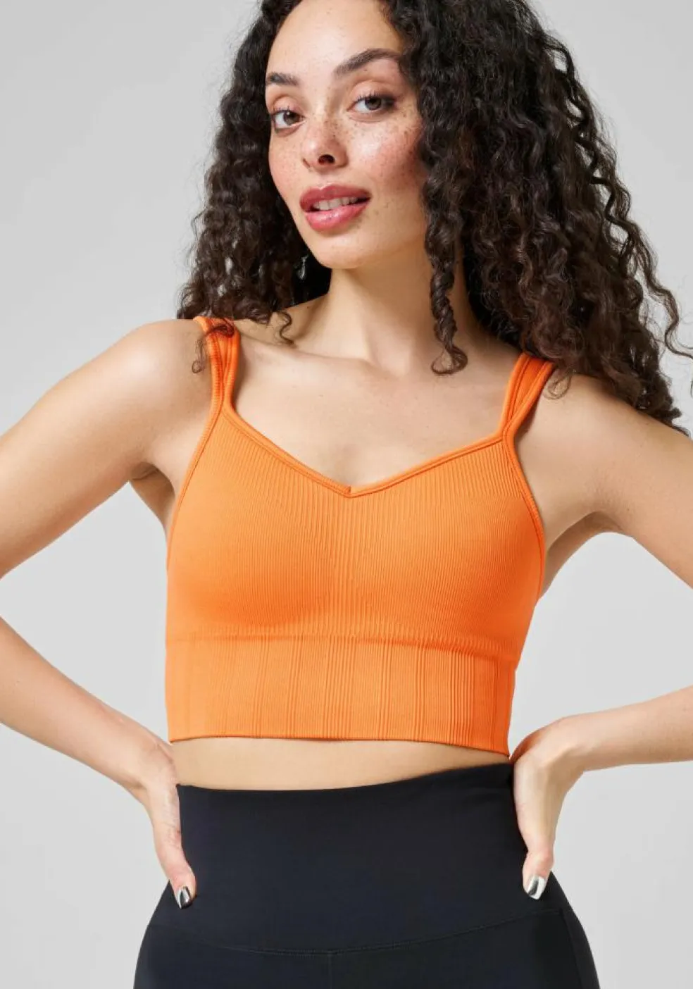 Stretchy materiale i ribstrik med et bredt elastisk underbånd med polstrede skåle, der giver et indbygget løft.