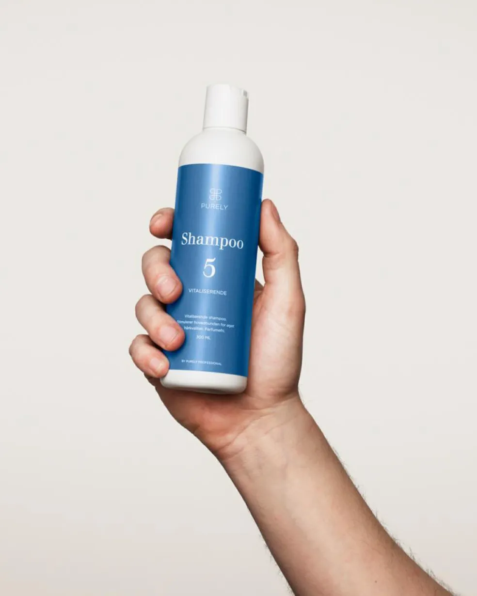 Purely Professional shampoo 5 er en vitaliserende shampoo med caffein og piroctone olamine, der øger cirkulationen i hivedbunde og forbedrer muligheden for en øget hårkvalitet.