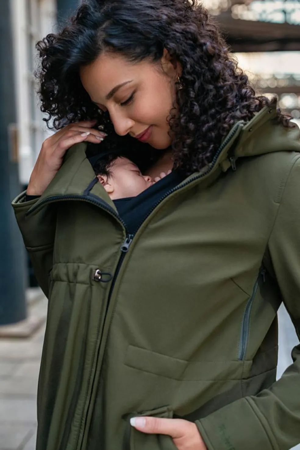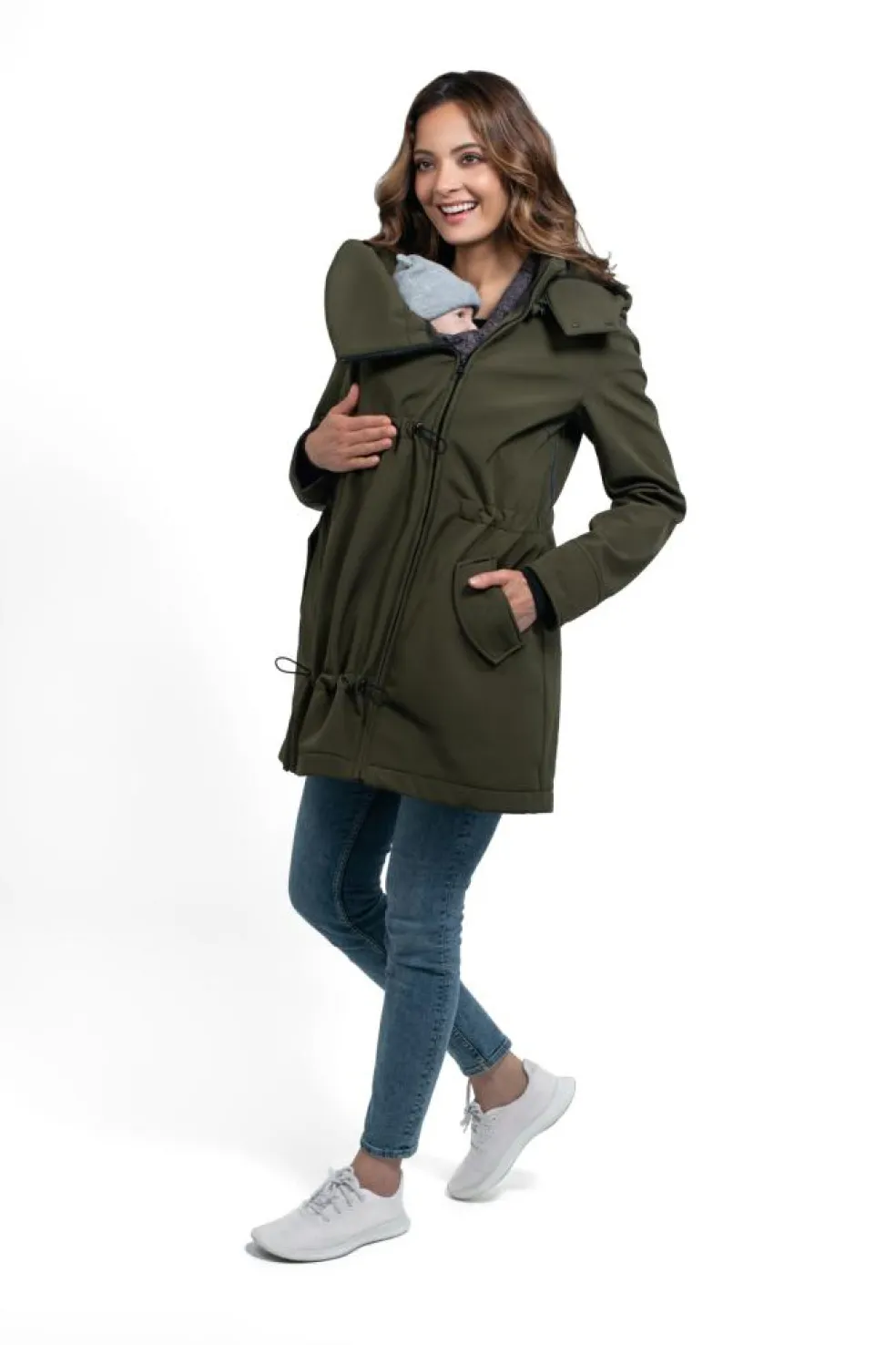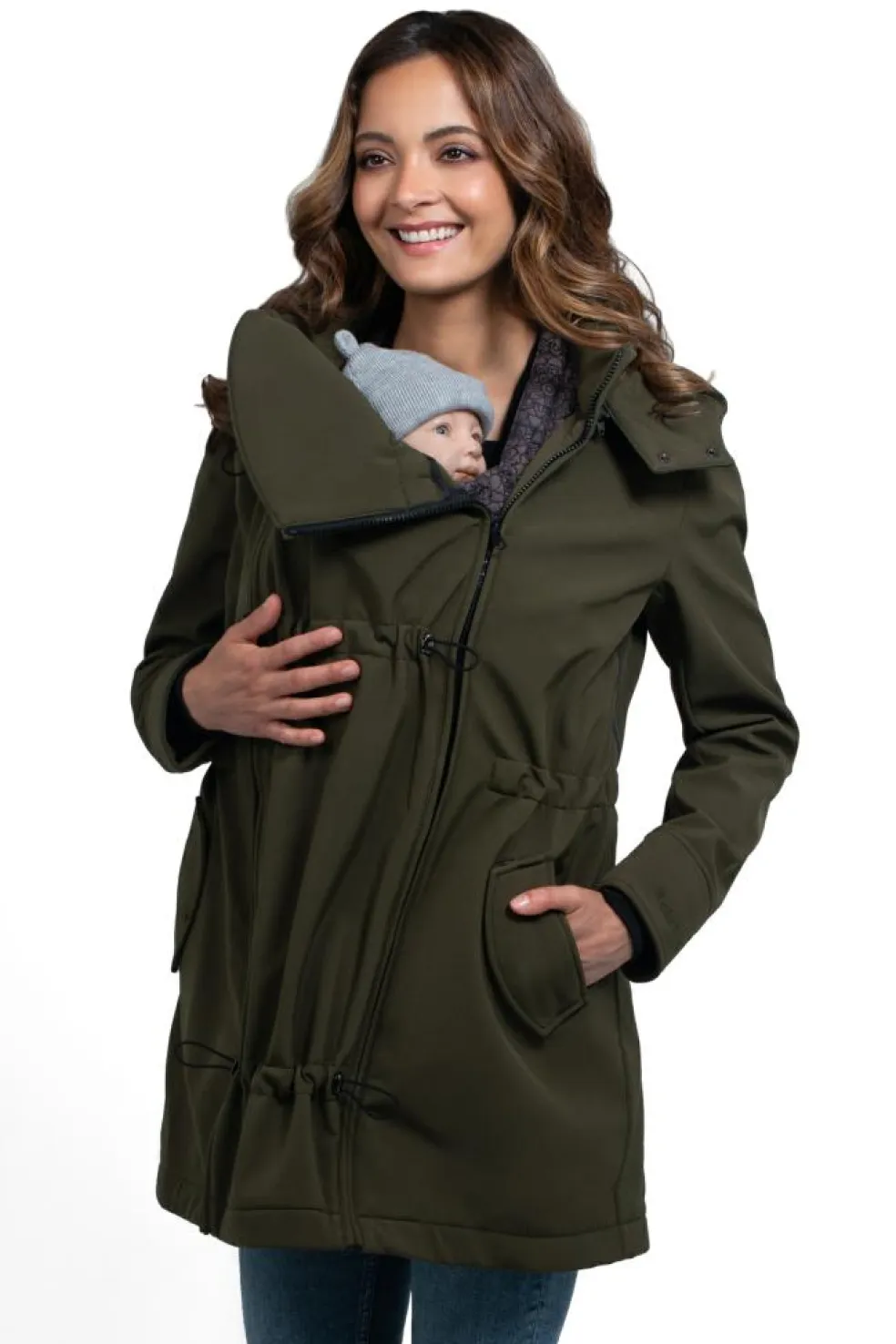En 4-i-1 jakke, der passer over enhver bæresele eller vikle, uanset om du bærer på front eller ryg, takket være det ekstra panel. Uden panelet kan den bruges som en almindelig jakke så længe du vil.