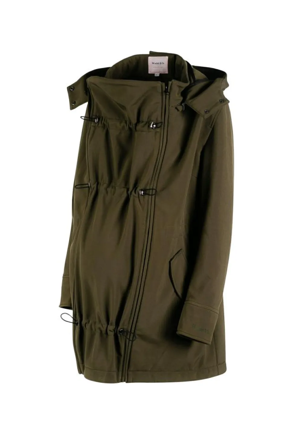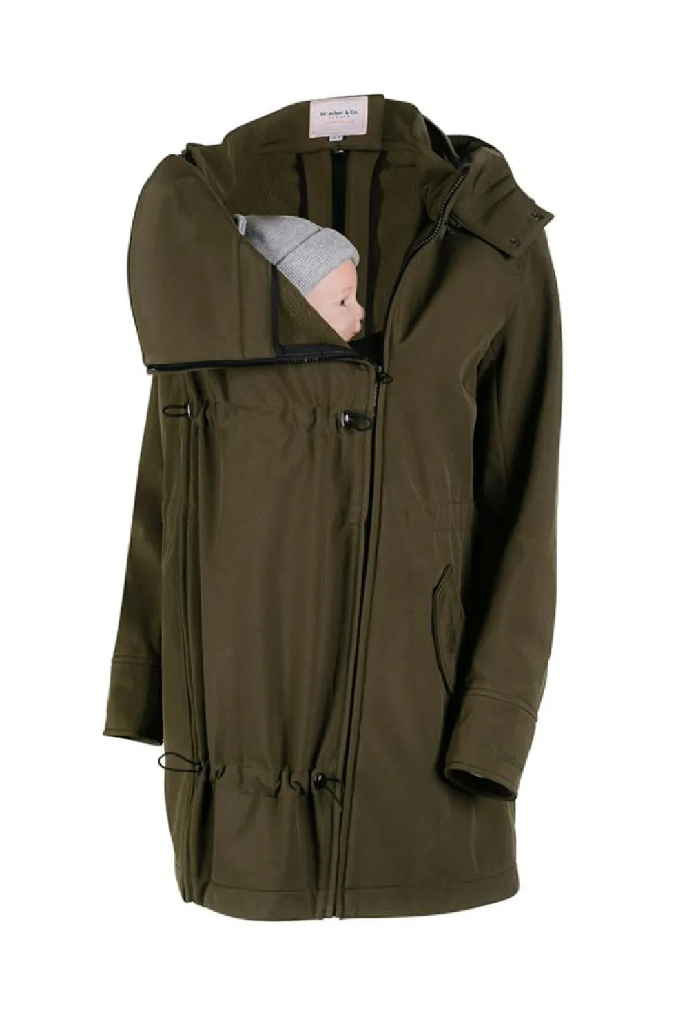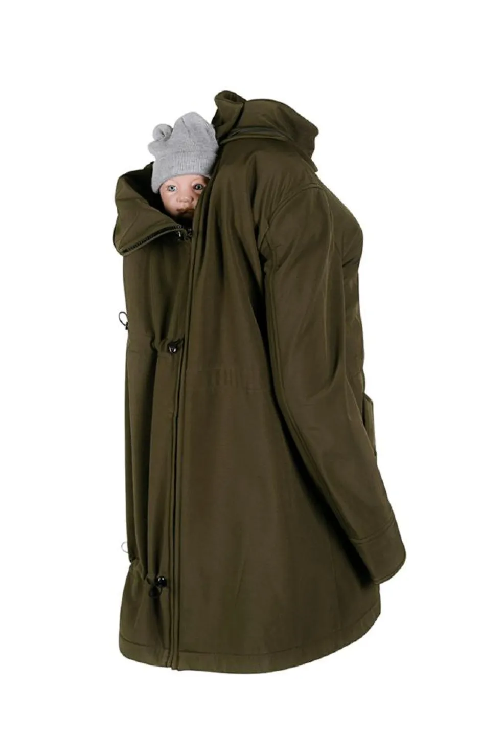 En 4-i-1 jakke, der passer over enhver bæresele eller vikle, uanset om du bærer på front eller ryg, takket være det ekstra panel. Uden panelet kan den bruges som en almindelig jakke så længe du vil.
