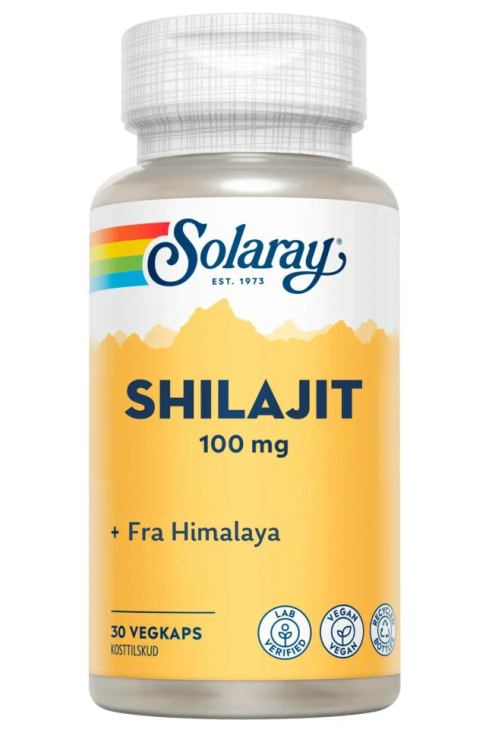 Solaray Shilajit indeholder shilajit, som hentes ud fra bjergsprækker i Himalaya. Indsamlet shilajit bliver renset og tørret til pulver.