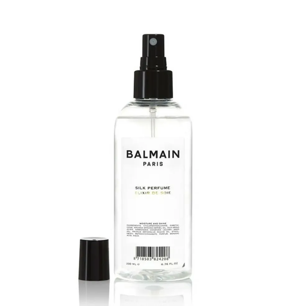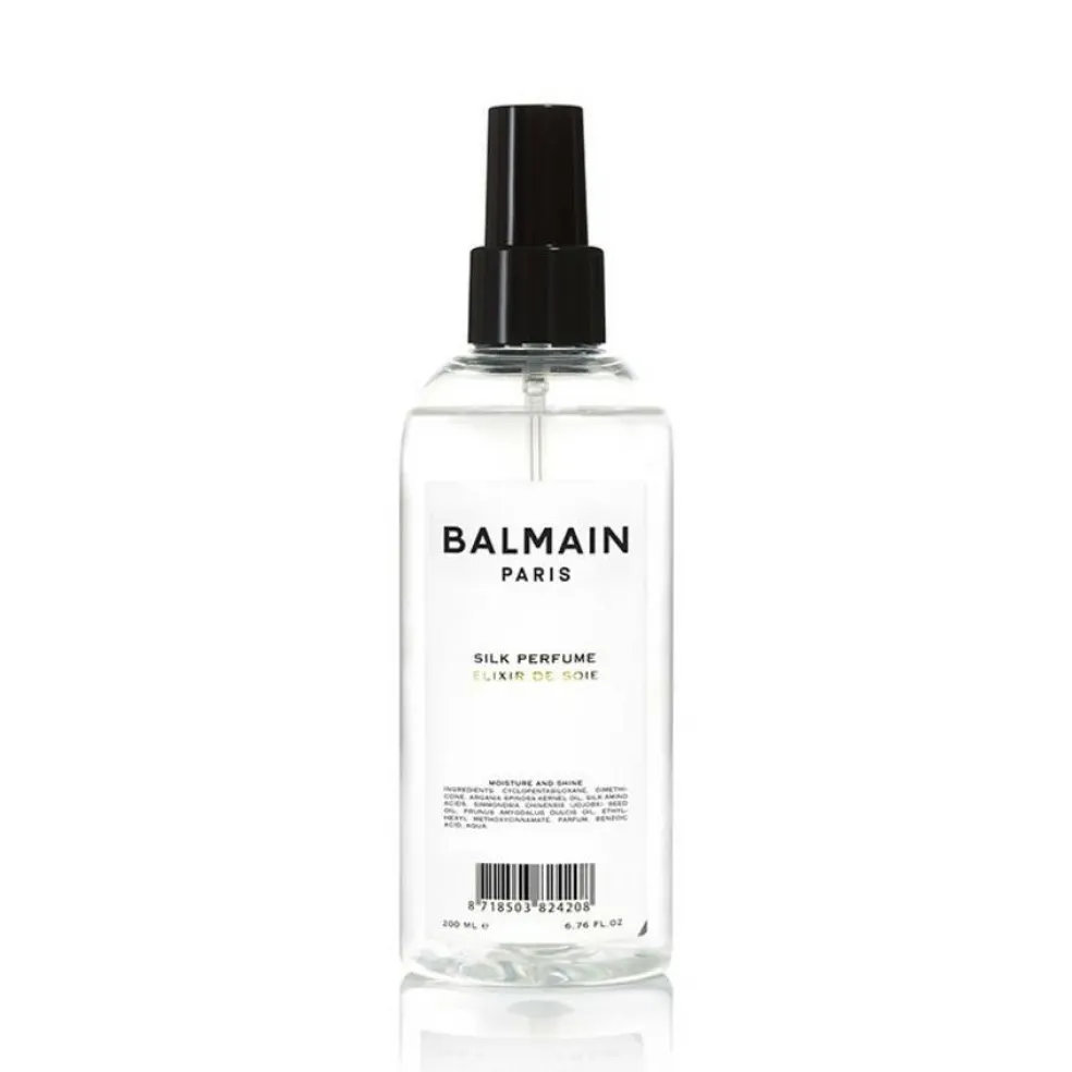 Balmain Hair Couture’s Silk Perfume er en nærende hårspray, der efterlader håret med en blød og silkeagtig finish. Formlen er beriget med ren arganolie og silkeprotein, som stimulerer fugtbalancen og sikrer optimal fugtighedsbevarelse i håret. Disse ingredienser beskytter beskadiget, tørt og svagt hår mod ydre påvirkninger og giver håret en langvarig silkeagtig glans.