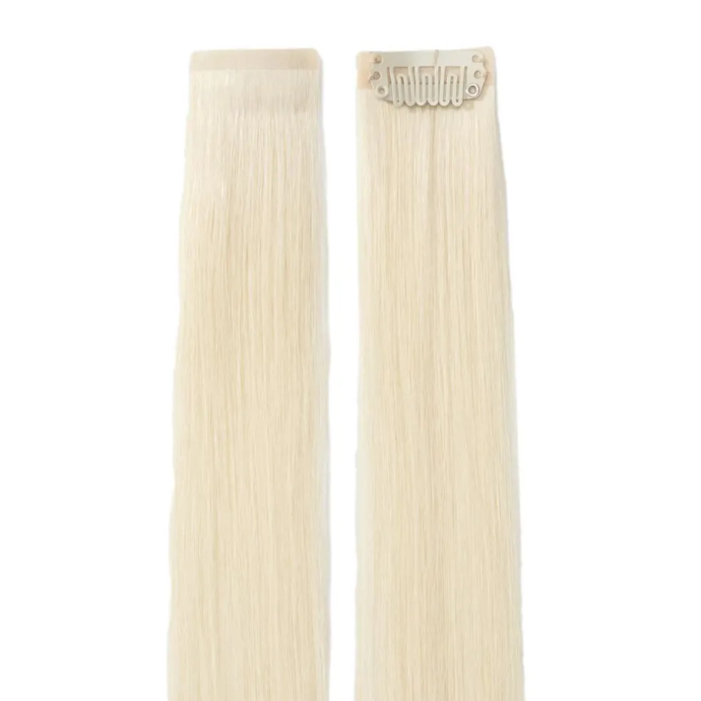 Single Invisible Clip-ins er hårstrå, der kan bruges til at skabe trendy frisurer og tilføje volumen eller farveeffekter til dit eget hår. Fastgør håret hurtigt og nemt med de påsyede clips. Single Invisible Clip-ins’ tynde, bløde trenser er meget diskrete, hvilket gør, at de kan fastgøres selv på mere udsatte steder tæt på ansigtet uden at være synlige. Håret er ægte og kan styles sammen med dit eget hår for et naturligt resultat. Single Invisible Clip-ins kan bruges alene eller i kombination med Invisible Clip-ins Light Volume og Medium Volume.