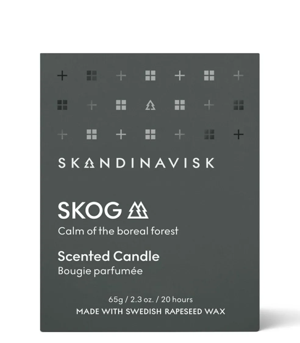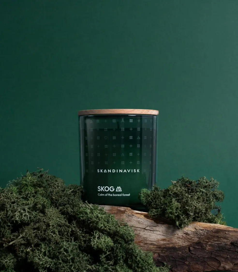 Små duftlys bestående af en voksblanding af svensk rapsolie. Lyset er vegansk og kommer i et malet glas med indgraveret FSC-certificeret bøgetræslåg.