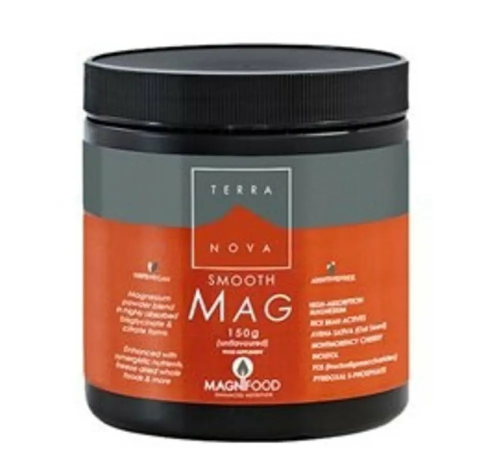 Smooth Mag fra Terranova er et pulver kosttilskud med frysetørrede grøntsager, samt magnesium og vitamin B6.