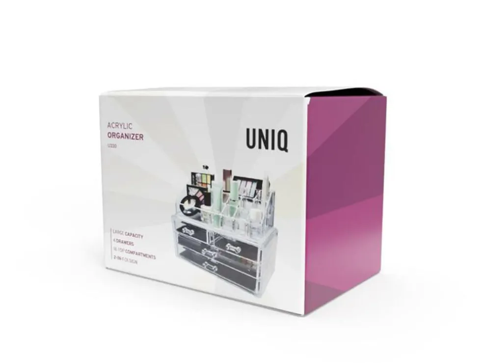 UNIQ Makeup Organizer Transparent er den ideelle løsning til at organisere dine skønhedsprodukter. Denne elegante organizer hjælper dig med at holde dit badeværelsesbord ryddeligt og sikrer, at du altid nemt kan finde det, du har brug for. Med denne organizer får du et overskueligt overblik over din makeup, smykker og andre skønhedsprodukter.