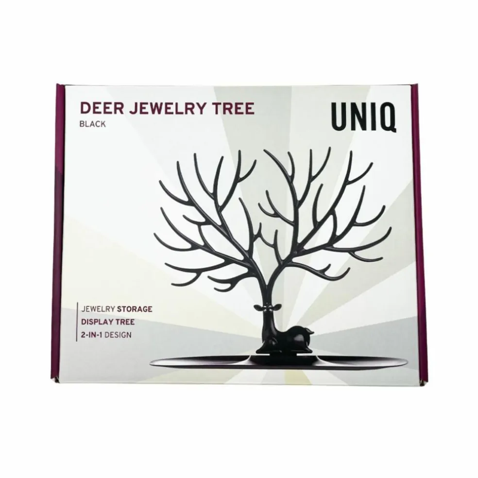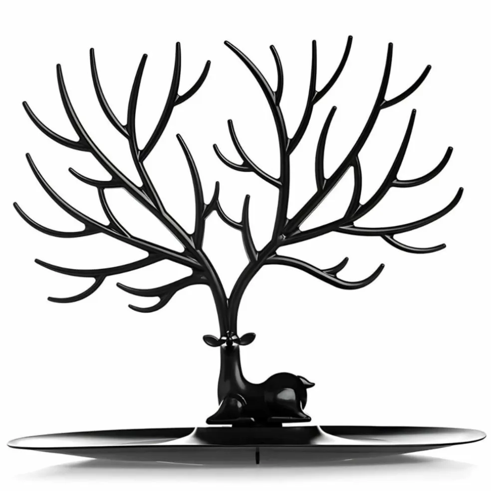 Dette smykketræ holder dine smykker pænt udstillet med en stor kapacitet for forskellige smykketyper og en praktisk dyb skål nedenfor for mindre genstande som ringe og ure.