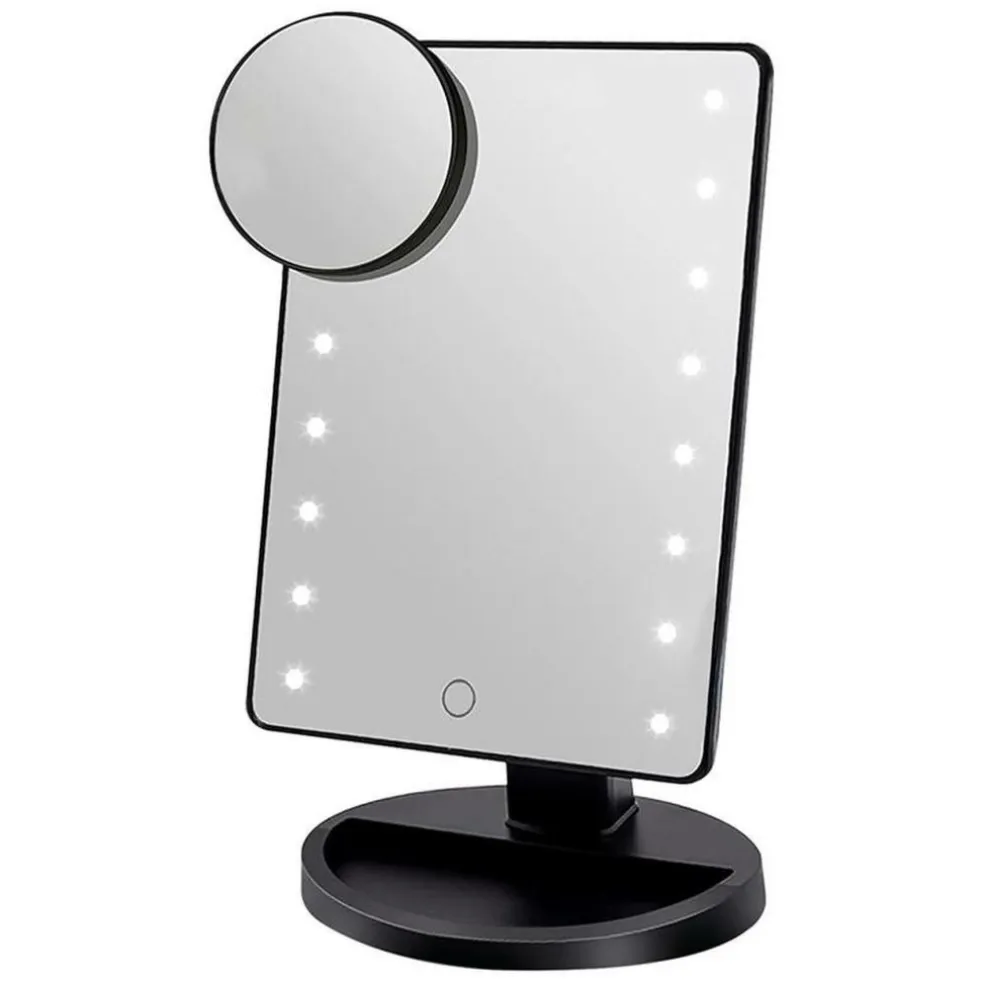Spejlet er inspireret af de populære Hollywood show spejle – og har et behageligt lys rundt i kanten, som giver den optimale belysning, når du skal lægge din makeup. Spejlet kommer med et ekstra mindre rundt spejl, som har 10 x forstørrelse og kan indstilles i flere positioner.