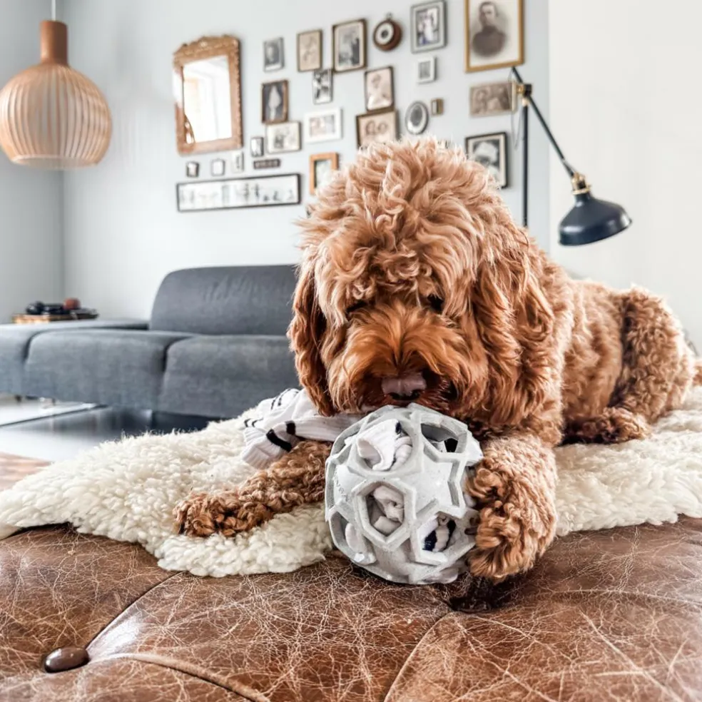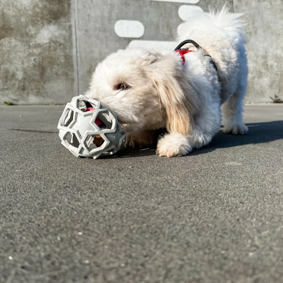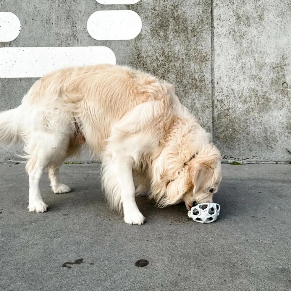 Bolden har store, stjerneformede huller, hvilket gør den perfekt til aktivering med større snacks.