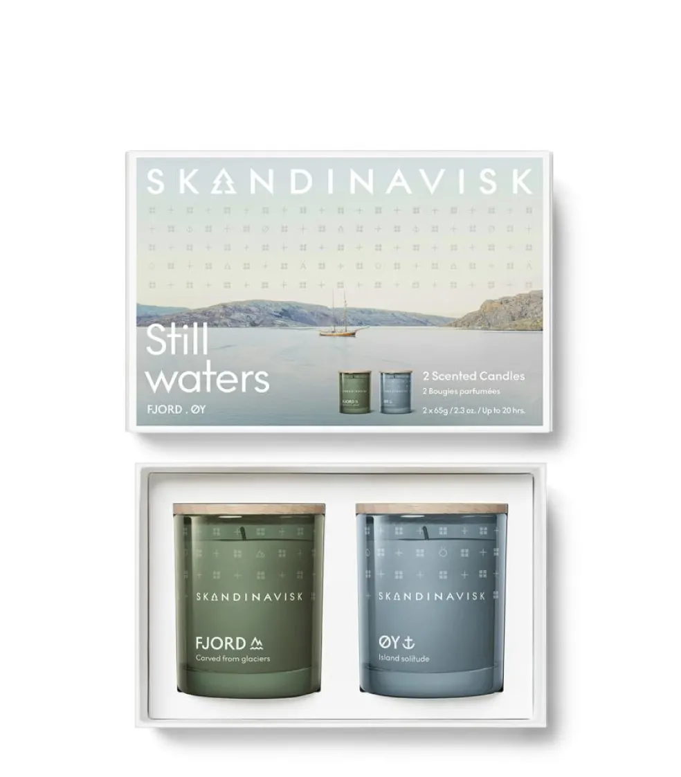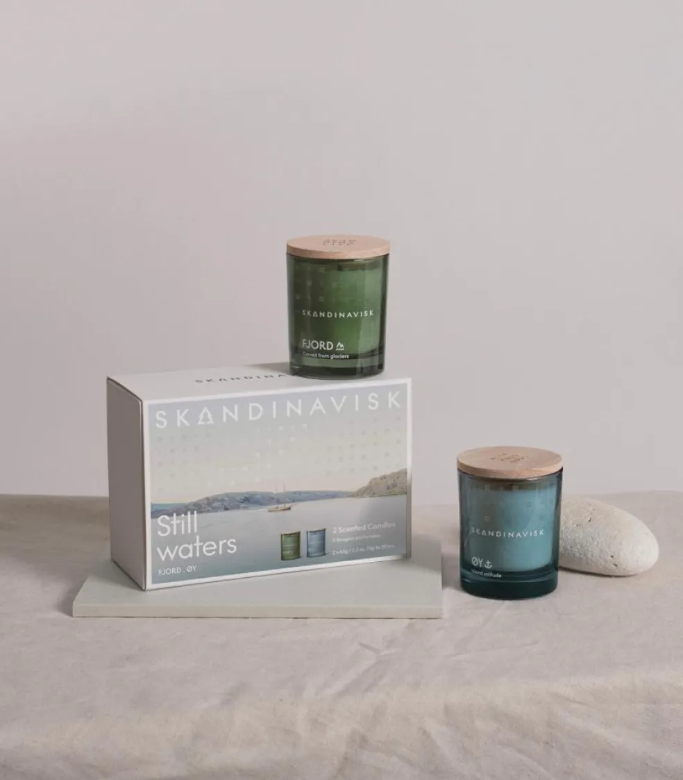 En hyldest til endeløse dage brugt i en sommerdis langs kysterne. Vores Still Water duftlys duo gaveæske samler to af vores kystdufte, ØY og FJORD.