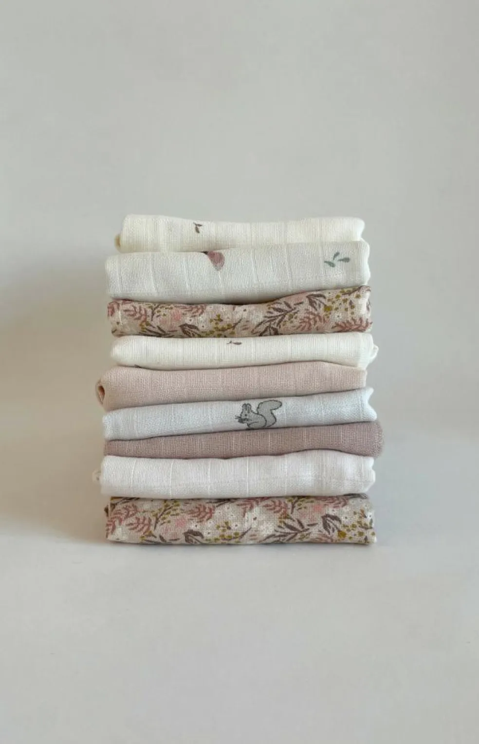 Stofbleerne har 4 lag musselin, der vejer 145 gram per m2, hvilket gør det super blødt og slidstærkt.