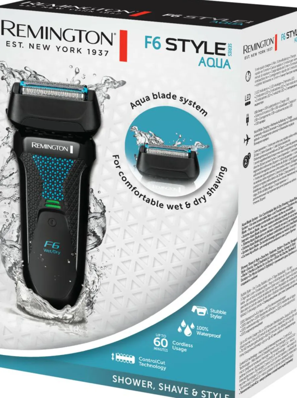 F6 Style Series Aqua Foil barbermaskinen er 100 % vandtæt til våd eller tør barbering og kan vaskes fuldstændigt for nem rengøring. Brug din foretrukne vådbarberingsskum eller geler, eller tag din barberingsrutine med i brusebadet.