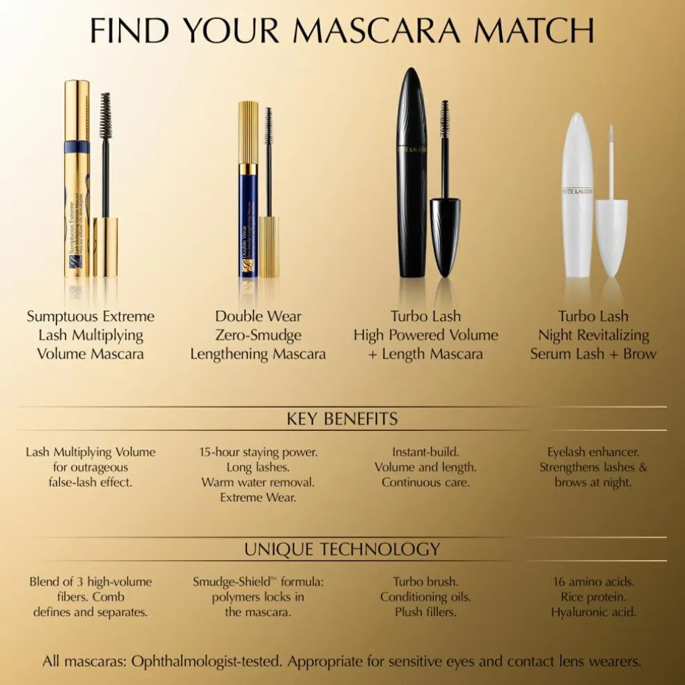 Estée Lauder Sumptuous Extreme Lash Multiplying Volume Mascara er en forlængende mascara, der giver dine vipper maksimal volumen. Denne mascara løfter og bøjer vipperne smukt, hvilket giver en imponerende false lashes-effekt. Med Sumptuous Extreme vil dine øjne fremstå mere klare, større og forførende. Formlen bag Extreme Bold Volume™ kombinerer tre forskellige typer volumengivende fibre i en let, luftig base. Dette skaber en illusion af eyelash extensions og efterlader dig med et look af flere og længere vipper. Denne mascara giver ekstra beskyttelse og pleje takket være dens vitamin kompleks..