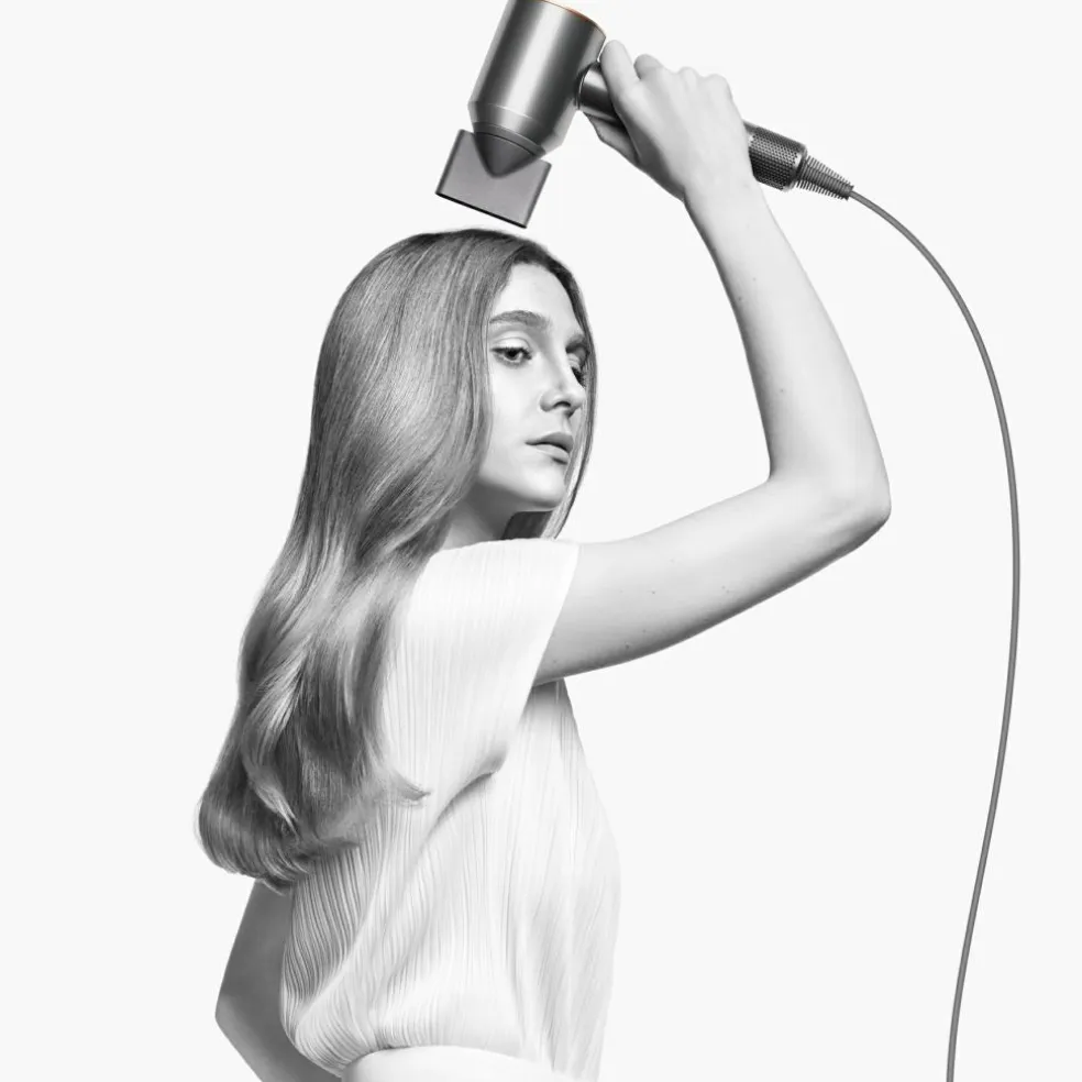 Den lille, kraftfulde digitale V9-motor snurrer med op til 100,000 o/m. Ved at kombinere dette med Air Multiplier™-teknonologien produceres der en højtrykskerne af kontrolleret luft, der sikrer en hurtig tørring og præcis styling.