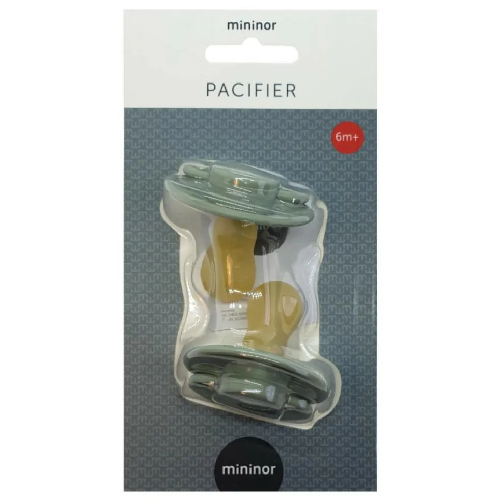 Mininors silikonesutter kan fås i 6 forskellige afstemte og moderne farvenuancer til piger og drenge, samt i 2 størrelser (0mdr.+ og 6mdr.+). Sutterne fås også med silikone.