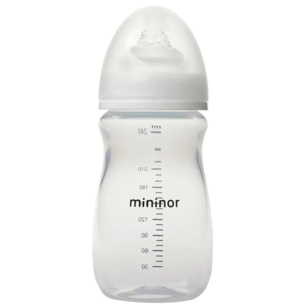 Sutteflaske i plast på 240ml med flaskesut til til nyfødt (0m).
