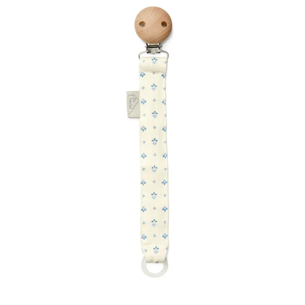Sød og praktisk suttekæde / suttesnor med rund træclips med to ventilationshuller. Stoffet er lavet af 100% økologisk bomuld og findes i mange fine Cam Cam mønstre. Suttesnoren er testet og overholder alle sikkerhedskrav i den Dansk/Europæiske lovgivning “DS/EN 12586 + A1”.Suttesnoren må ikke bruges som legetøj, den skal bruges under opsyn og må ikke sidde på barnets tøj når barnet sover. Tjek suttesnoren jævnligt og kassér ved tegn på slitage. Suttesnor i blå og hvide nuancer.