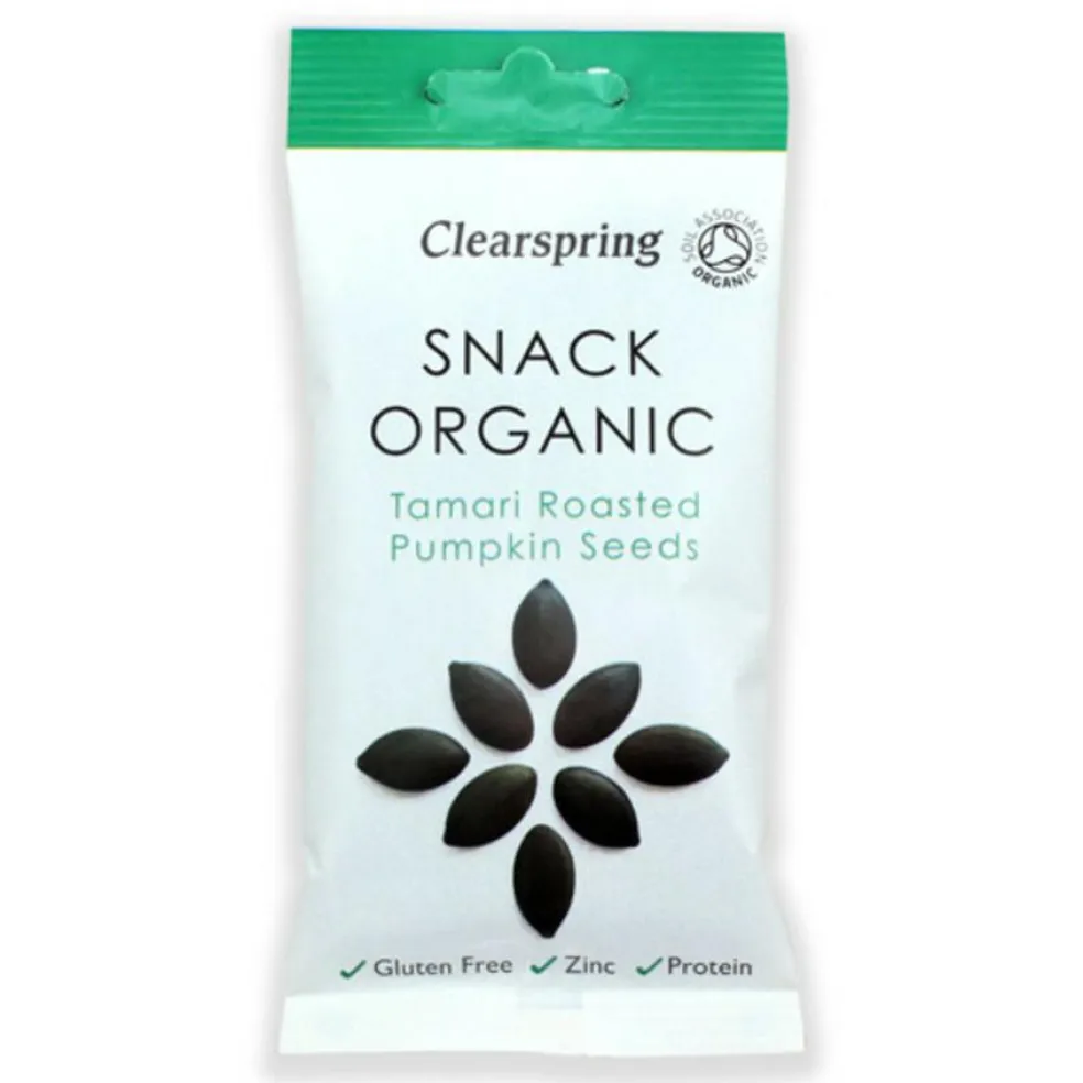 Er lavet af de fineste, økologisk dyrkede græskar kerner som er ristet til perfektion i Clearsprings egen økologiske Tamari (soyasauce).