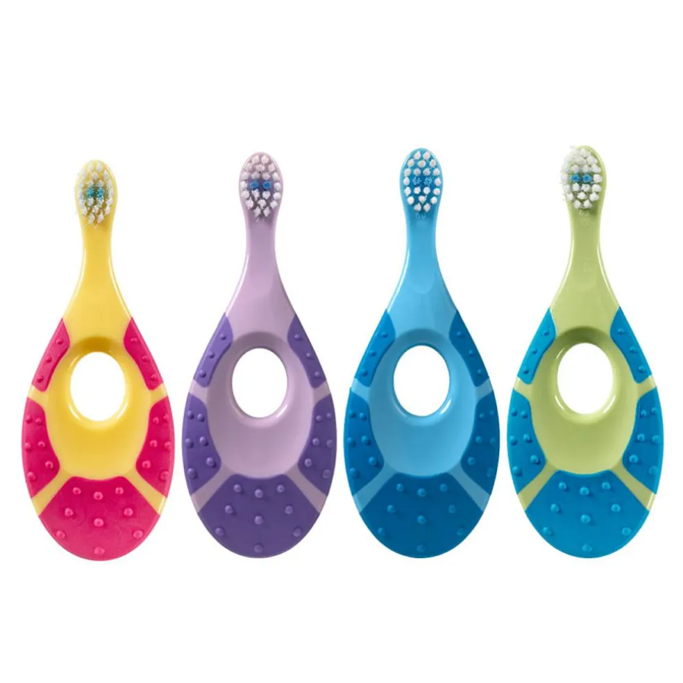 Små børn klør ofte i gummerne når tænderne kommer og denne tandbørstes skaft fungerer derfor også som bidering, der trygt kan tygges på. Den korte hals forhindrer at børsten føres for langt ind i munden.