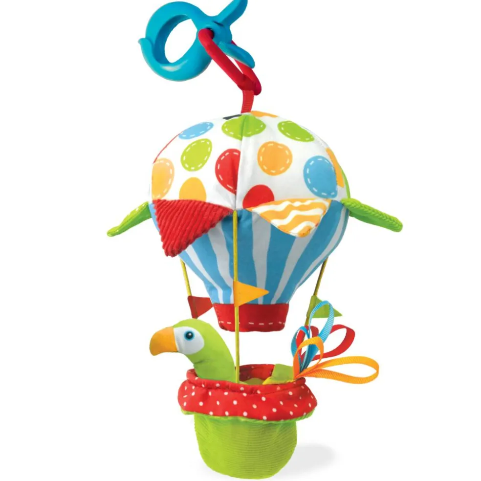 Luftballonen har en ring, så den nemt kan sættes på klapog barnevogn, når man er på farten eller bare klikkes på andre legeting.