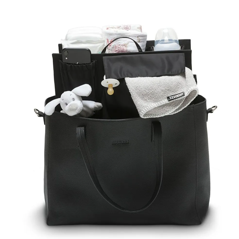 Den praktiske inddeling byder på mange opbevaringsmuligheder, blandet andet et termorum, to rum med lukning og pusleunderlag. Der er endda et særligt rum til din mobiltelefon, en nøglering og praktiske håndtag.
