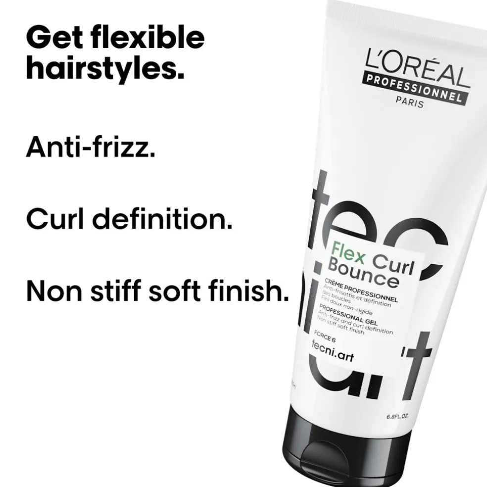 Cremekernen hjælper med at udglatte krus, mens gelen arbejder for at give et skinnende look og tilføjer bevægelse i håret.