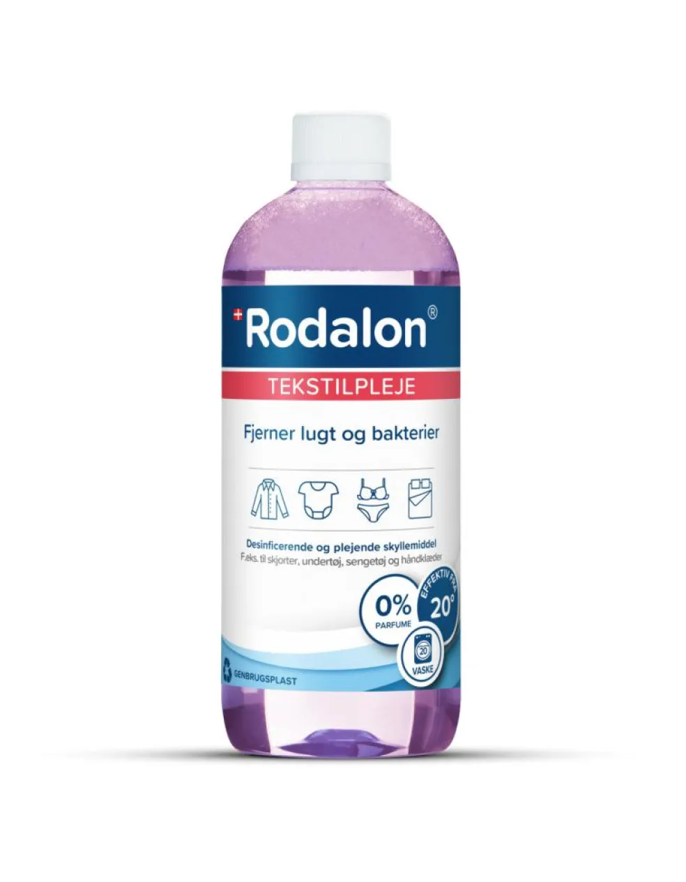 Rodalon Tekstilpleje er effektivt mod bakterier og vira. Ved regelmæssigt brug af Rodalon Tekstilpleje og ved vask på 20 grader forlænges tøjets levetid og der opnås en energibesparelse.
