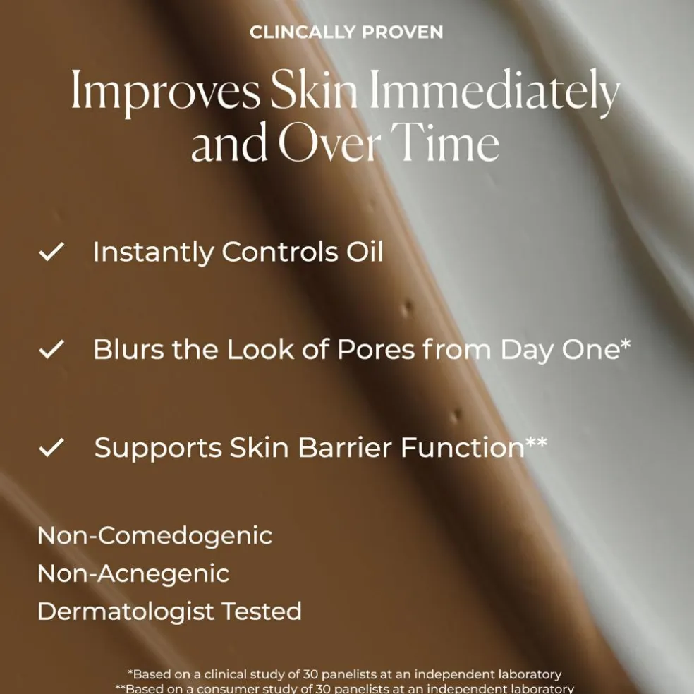 – 24HR+ kontrol af glans med slørende effekt: Klinisk bevist til at kontrollere glans og sløre porer i over 24 timer.**