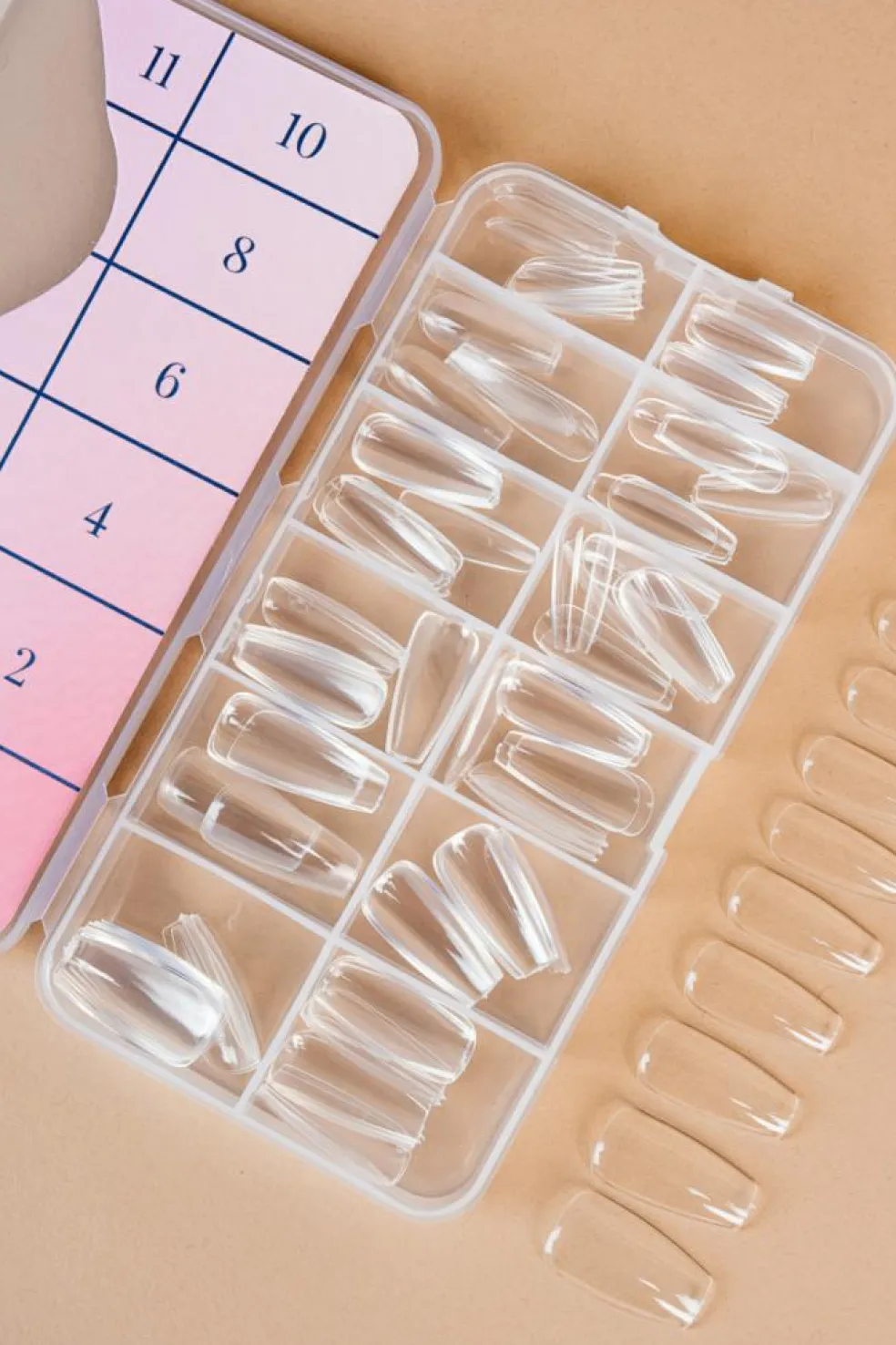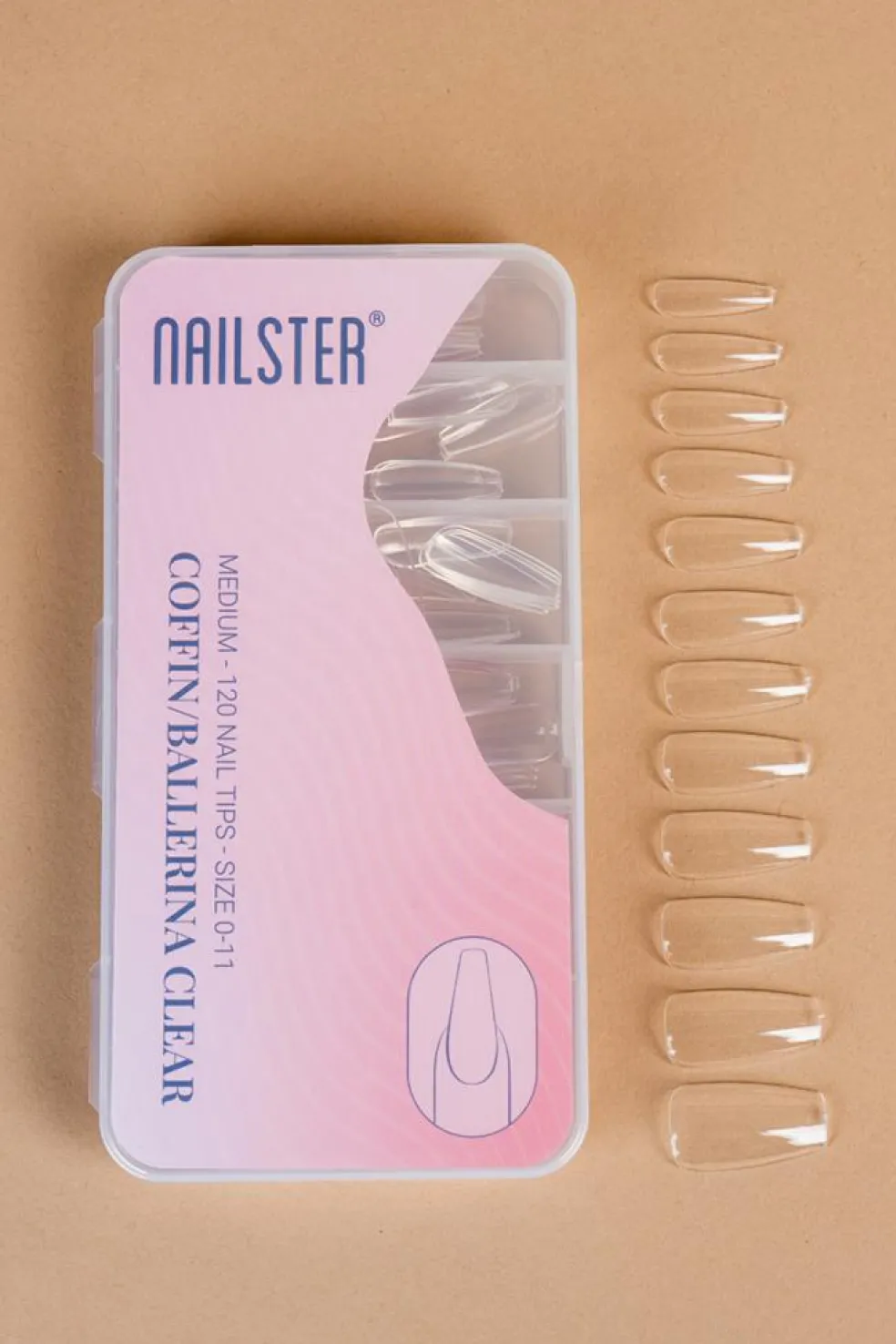 Ballerina klar tip: Kunstige negletipper i naturfarvet tip, formet som en ballerinasko. Tippen er uden false – dvs. At tippen ikke har den rille der normalt er på undersiden. Påføres med Nailster Neglelim. Æsken indeholder 100 stk. Størrelse 0-9 Tip: Buff overfladen af den kunstige negl, inden påførring af gel polish.