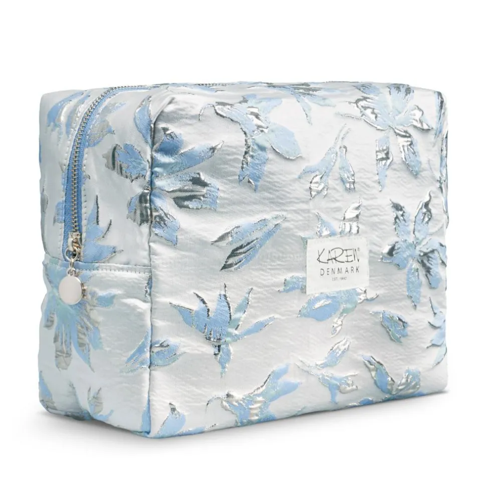 Derudover er toilettaskens fór quiltet for at give ekstra beskyttelse til dine dyre plejeprodukter. Toilettasken er fremstillet af smuk brokade.