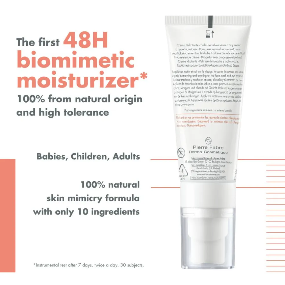 Avène Tolérance HYDRA-10 48H Hydrating Face Cream er en 100% naturlig, fugtgivende ansigtscreme til tør og meget tør, sensitiv hud, hos både voksne, børn og spædbørn fra 2-måneders alderen.