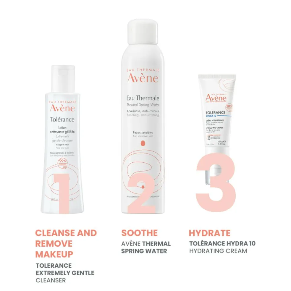 - Avène Termalkildevand: Virker beroligende, irritationsdæmpende og blødgørende
