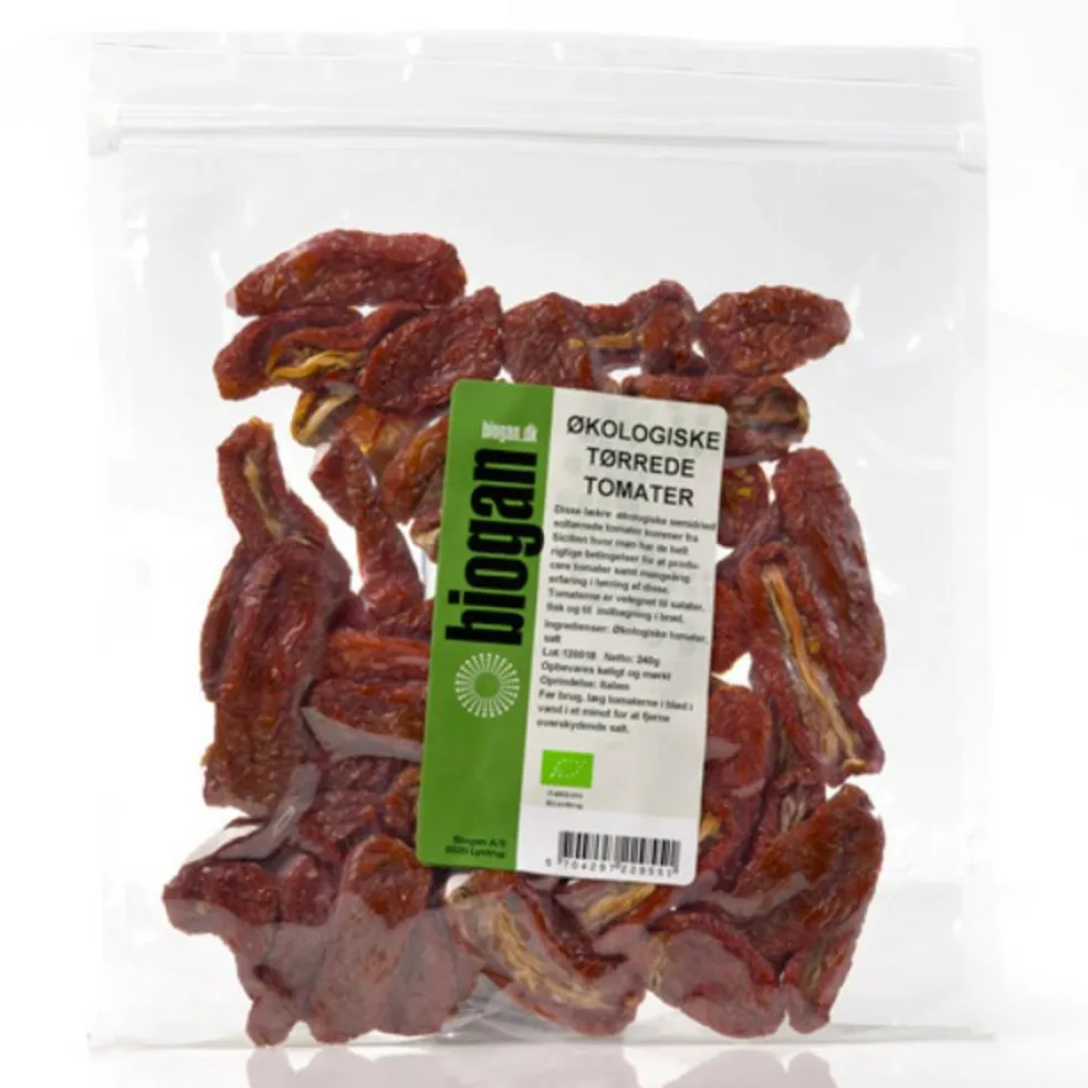 Disse lækre økologiske semidried soltørrede tomater kommer fra Sicilien, hvor man har de helt rigtige betingelser for at producere tomater samt mangeårig erfaring i tørring af disse. Tomaterne er velegnet til salater, fisk og til indbagning i brød.
