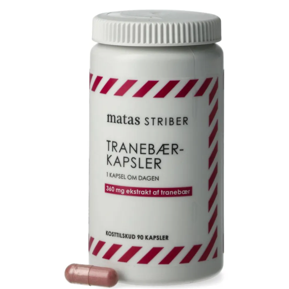 1 kapsel indeholder 360 mg tranebærekstrakt (Vaccinium macrocarpom Aiton) svarende til ca. 12 g tranebær.