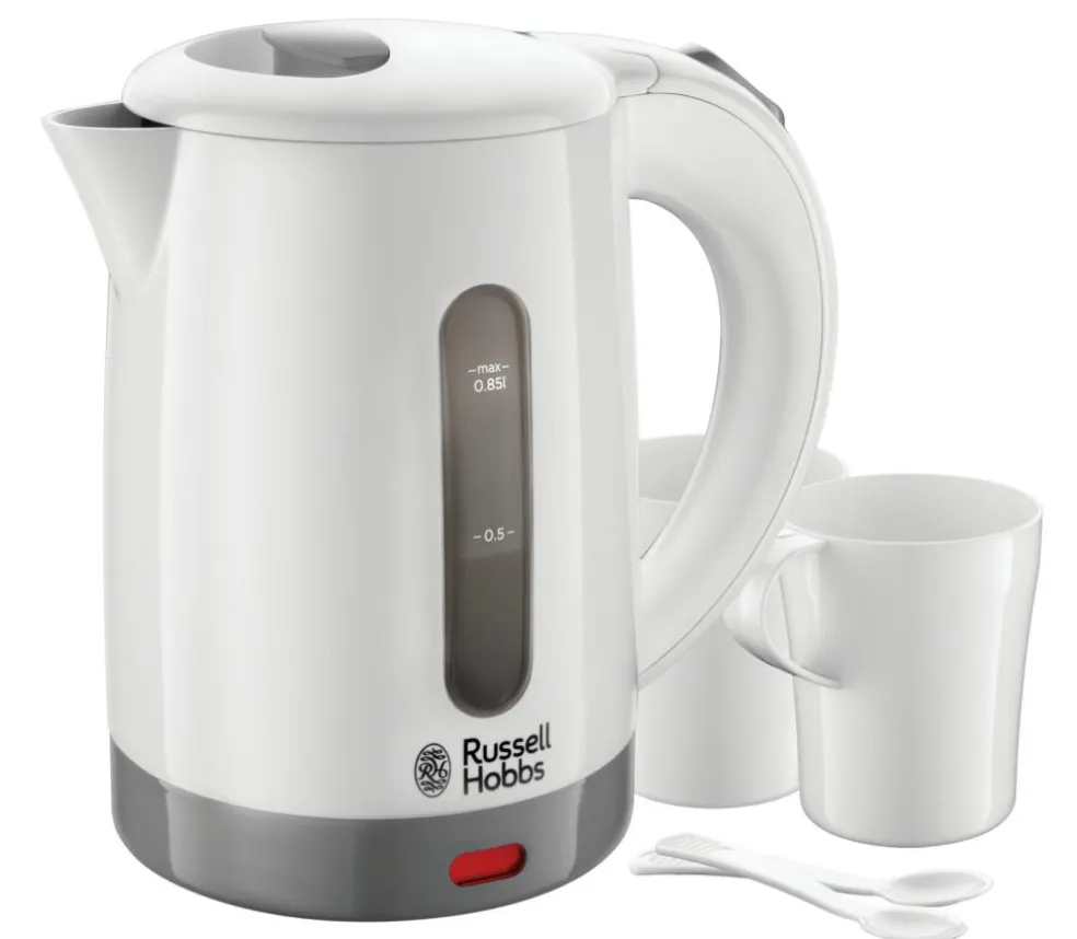 Denne rejse-elkedel leveres i en moderne hvid plastik, der er let og lille i størrelsen – perfekt til at have med på rejse. Du kan være på campingferie ved kysten eller ude i vildmarken, denne kompakte rejsekedel sikrer, at du altid kan regne med en god brygning uanset om du brygger til te eller kaffe. Kompakt rejsekedel Inkluderer to kopper og skeer, som kan opbevares inde i kedlen 1000W Beskyttelse mod at tænde uden vand i Skjulte varmeelementer 0,85l kapacitet Hængslet låg for nem opfyldning Aftageligt, vaskbart filter Global spænding To vinduer med vandstandsmåler Tænd-indikator i neon
