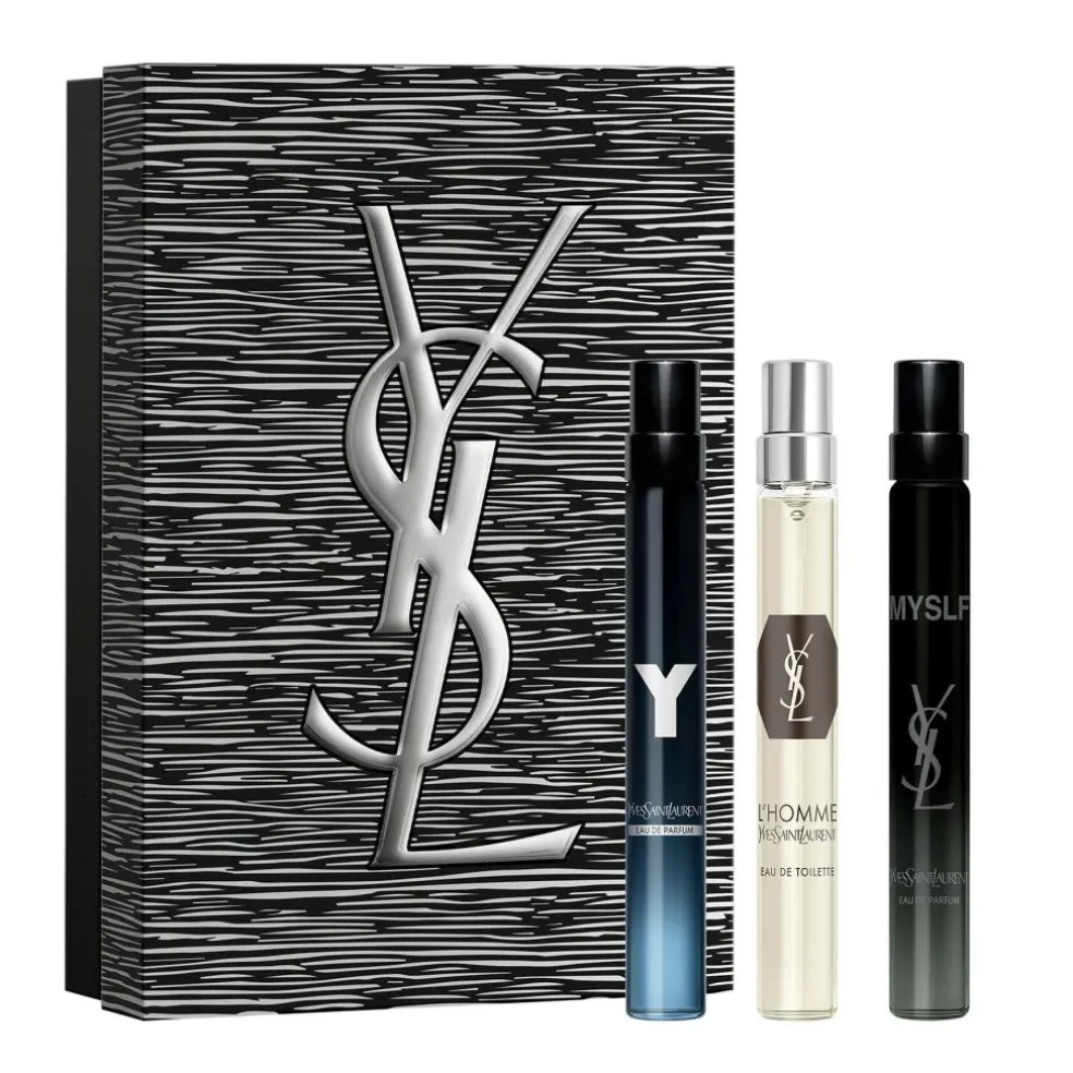 Skift din duft afhængigt af humør eller lejlighed, Y for selvtillid og friskhed, L’Homme for tidløs elegance og MYSLF for dristig individualitet. Perfekt til rejser, daglig brug eller som en luksuriøs julegave.