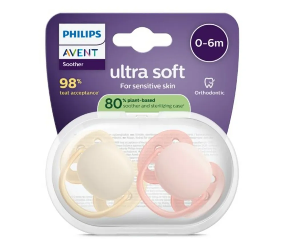 *En amerikansk forbrugertest fra 2023 bekræfter, at 98 % accepterer den teksturerede Philips Avent-sut, der bruges i vores ultrasutter (n=201).